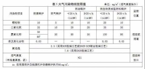 《星空网(中国)大气污染物排放标准》严格了星空网(中国)烟气颗粒物、二氧化硫、氮氧化物的排放限值,燃煤星空网(中国)分别为10毫克/立方米、35毫克/立方米、50毫克/立方米;燃气星空网(中国)分别为5毫克/立方米、10毫克/立方米、50毫克/立方米;燃油星空网(中国)分别为10毫克/立方米、20毫克/立方米、80毫克/立方米;燃生物质星空网(中国)分别为20毫克/立方米、30毫克/立方米、150毫克/立方米;按吨位对燃油星空网(中国)、燃生物质星空网(中国)污染物排放实施差异化标准管控,20蒸吨/小时及以上燃生物质星空网(中国)颗粒物、氮氧化物明确为10毫克/立方米、80毫克/立方米,燃油星空网(中国)氮氧化物规定为50毫克/立方米。增加了氨逃逸控制指标,根据不同治理工艺,采用SCR脱硝工艺或SNCR-SCR联合脱硝工艺氨逃逸为2.3毫克/立方米,采用SNCR脱硝工艺氨逃逸控制指标为7.6毫克/立方米。